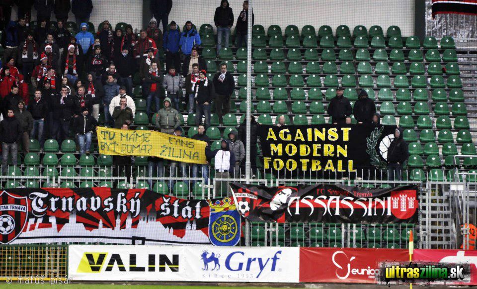 Nápis reagoval na smutnú skutočnosť , že žilinský fanúšik si musí zakúpiť lístok do sektoru hostí, aby mohol stáť na tribúne, ktorá bola dlhé roky domovom žilinského kotla. Bol doplnený o vlajku Against Modern Football a niekoľko pokrikov, medzi inými aj “vráťte sever fanúšikom”. Následne sme poďakovali Trnavákom a opustili sektor.